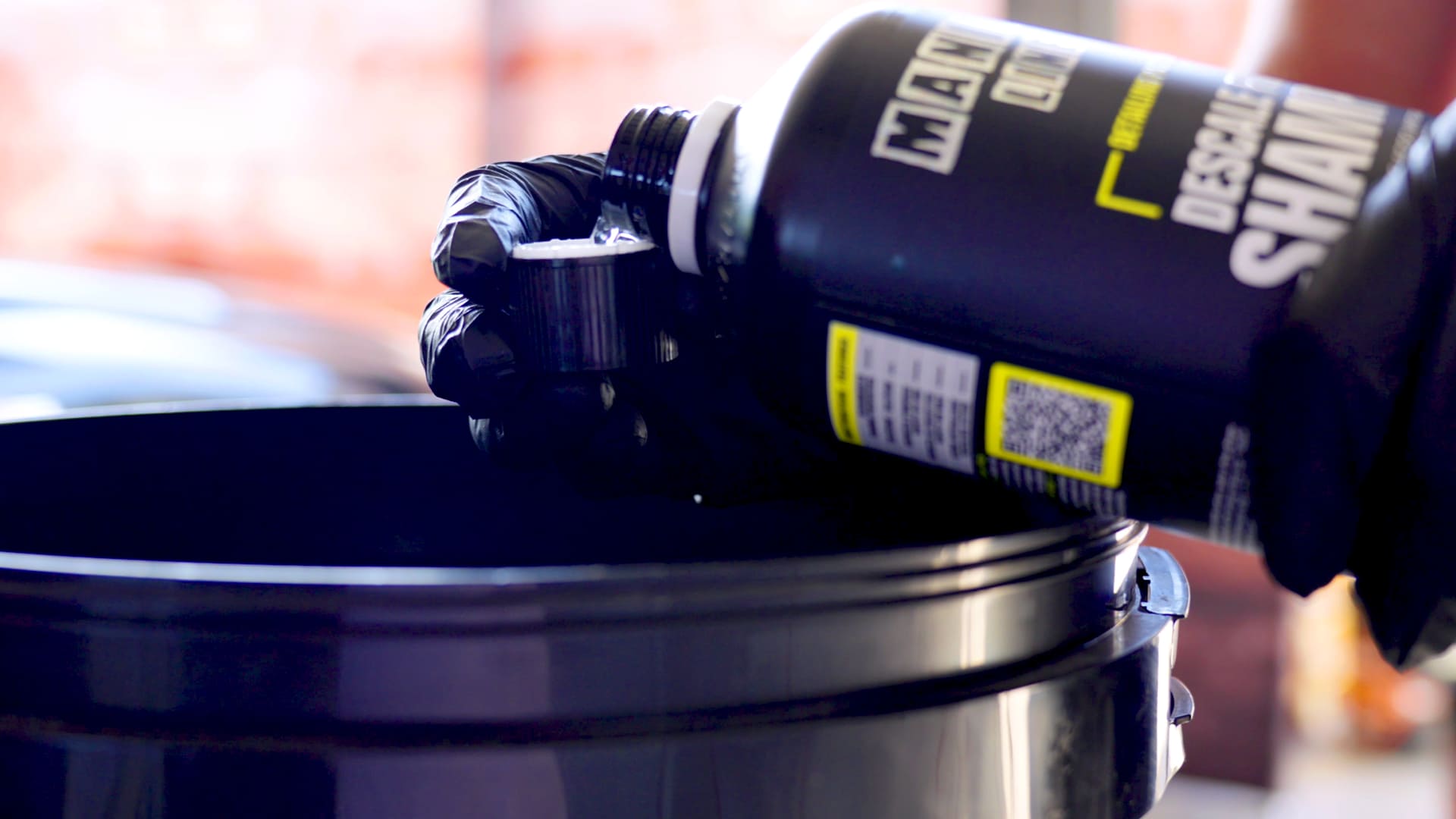 - Aggiungi 1-2 tappini di shampoo nel secchio Wash per aumentare la lubrificazione oppure aggiungi 3 tappini di prodotto per rimuovere macchie causate da una pioggia sabbiosa.