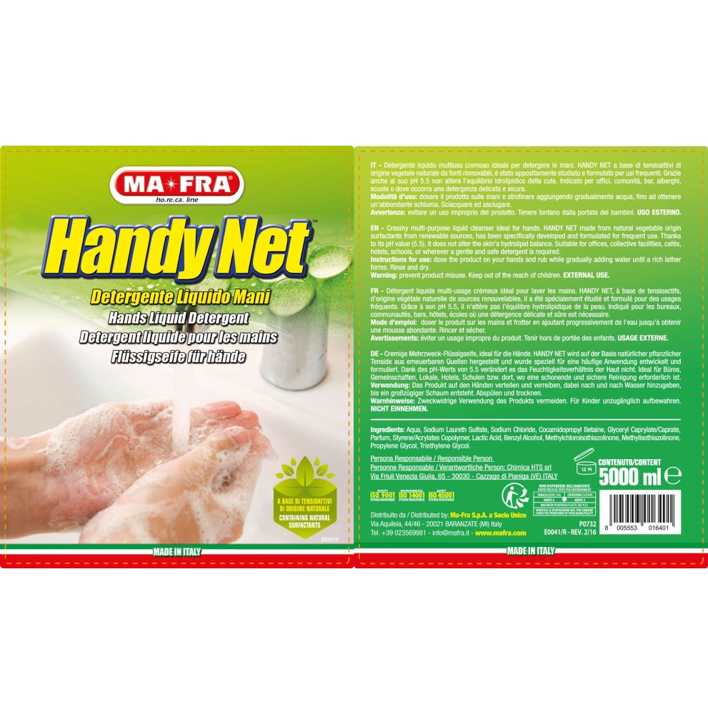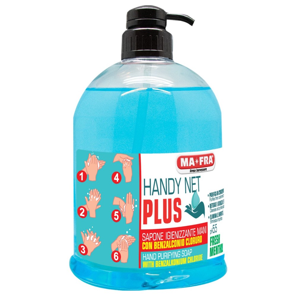 Handy Net Plus di Mafra è il sapone liquido studiato per chi richiede un’igiene sicura e quotidiana. Grazie alla sua formula con benzalconio cloruro, rimuove efficacemente germi e batteri mantenendo la pelle morbida.