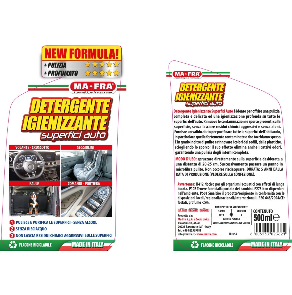 Detergente Igienizzante Superfici Auto è disponibile nel formato 500ml.