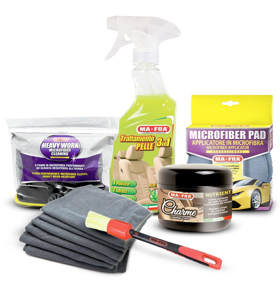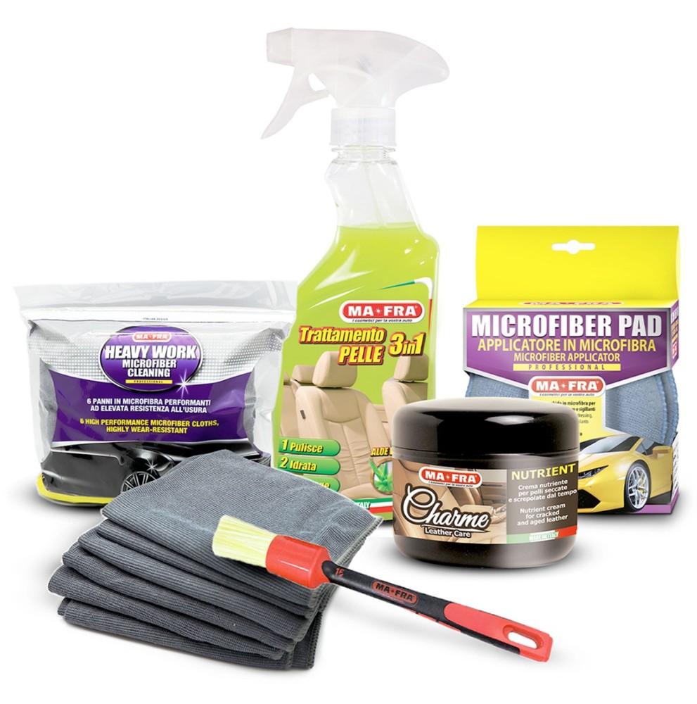 Scopri il Kit pulizia completa interni in pelle, progettato per restituire brillantezza e morbidezza ai sedili dell’auto. La sinergia tra estratti naturali e formulazioni specifiche elimina sporco e macchie senza alterare il colore originario.