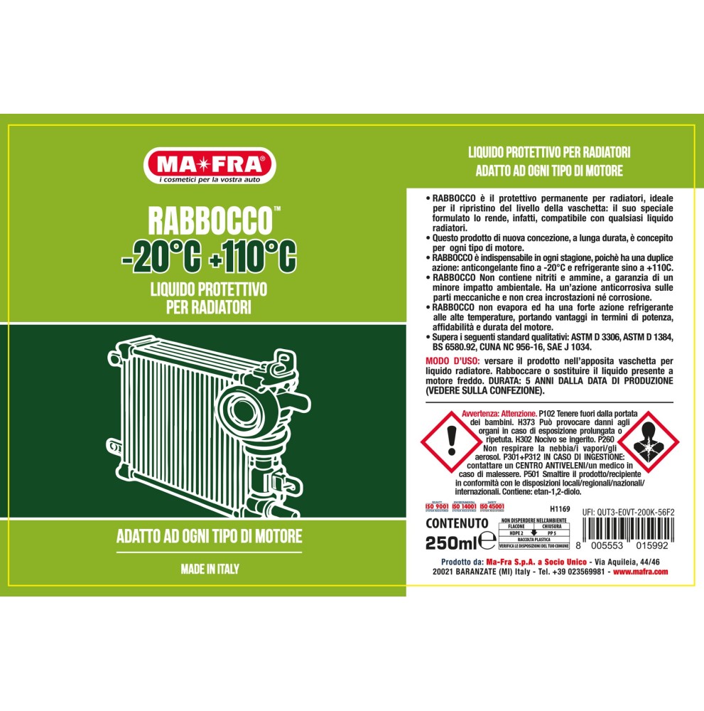 - Doppia azione: anticongelante fino a -20°C e refrigerante fino a +110°C