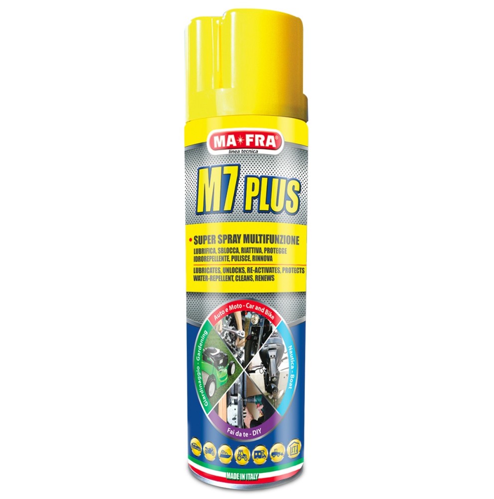 Il lubrificante spray M7 Plus si contraddistingue per la sua formula avanzata, capace di svolgere sette azioni primarie in un unico prodotto: