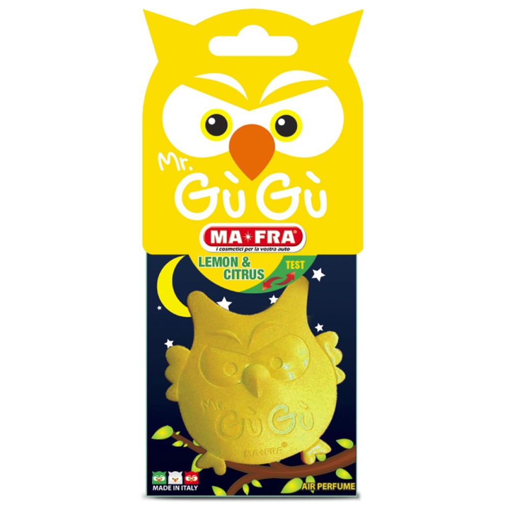 Mr. GùGù è il profumatore auto che unisce stile e praticità in un gufetto portafortuna dal design esclusivo. La gomma profumata di ultima generazione garantisce una fragranza persistente, resistente alle alte e basse temperature.