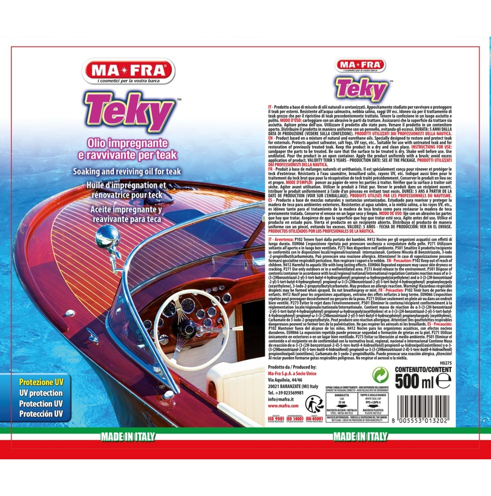 TEKY è il nuovo olio a base di miscele naturali e uretanizzati appositamente studiato per ravvivare e proteggere le parti esterne in teak delle imbarcazioni.