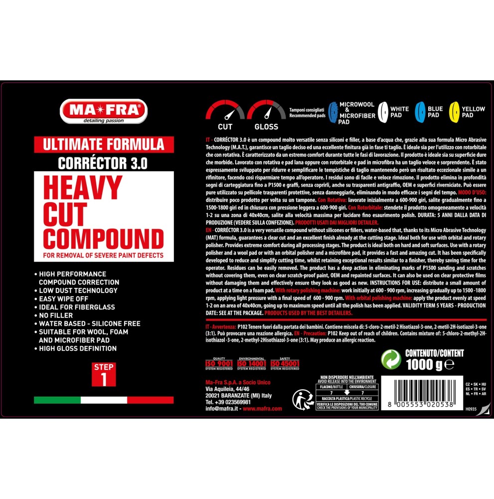 Miglioramenti tecnici: la nuova formula sviluppata incrementa la capacità di taglio del 20% rispetto alla versione precedente e riduce i tempi di lavorazione quando si utilizza una lucidatrice orbitale. In pochi passaggi potrai eliminare graffi e segni da carteggiatura fino a P1500.