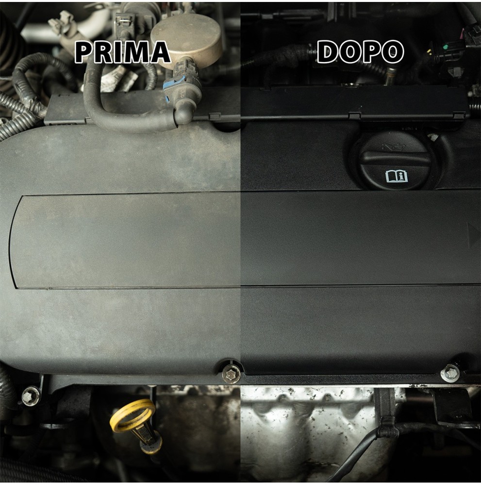 - Elimina ogni tipo di sporco: grasso, olio, traffic film, smog e incrostazioni.