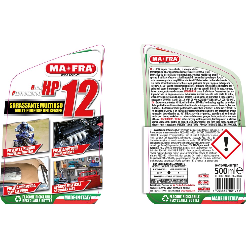 Perfetto per auto, moto, camper e non solo, HP12 agisce in profondità su motori, cromature, cerchioni, carrozzeria e plastiche, ma può essere utilizzato con grande efficacia anche per la pulizia di utensili, attrezzature da officina, ingranaggi e superfici di lavoro.