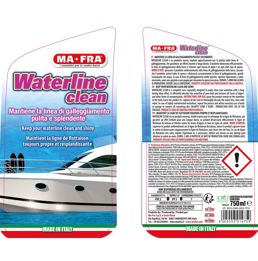 WATERLINE CLEAN è un prodotto nuovo, completamente biodegradabile, studiato appositamente per la pulizia della linea di galleggiamento.