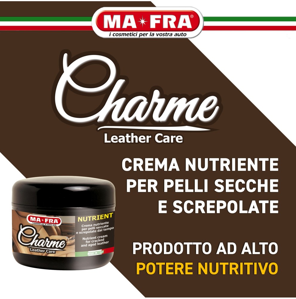 Questo prodotto è adatto per restituire tono e splendore a pelli seccate e screpolate dal tempo. Charme Nutrient contrasta il deterioramento dovuto all’uso quotidiano dell’auto.