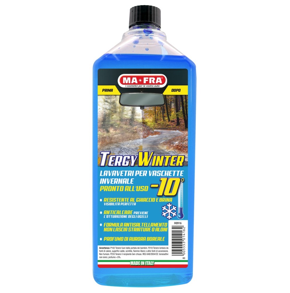 Tergy Winter -10°C è il liquido lavavetri anticongelante per vaschette tergicristallo, la soluzione definitiva per mantenere pulito e cristallino il parabrezza anche nelle giornate più rigide.